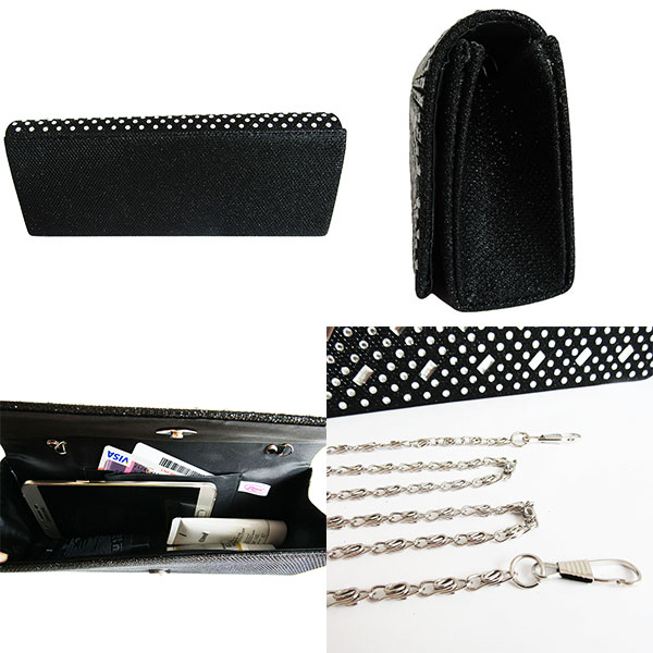 ◆一緒に購入で送料無料!! ◆送料無料まであと少し!ミニサイズをプラス!! 商品名 パーティークラッチバッグ(003) (チェーン付き) 商品説明 散りばめられたスタッズがキラキラ輝くデザインのパーティーバッグ。