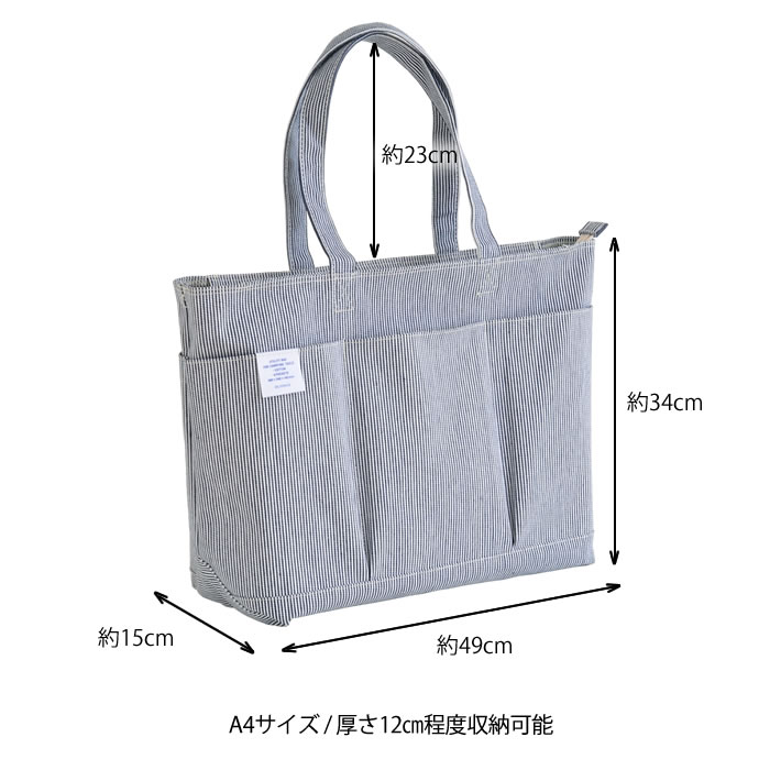 サイズ 約W49×H34×D15cm ■高さ(H)は持ち手部分除く ■持ち手:約幅2.5×長さ53cm ■持ち手の高さ:約23cm 素 材 コットン 重 量 約530g 備 考 ■8ポケット ■A4サイズ厚さ12cm程度収納可能。