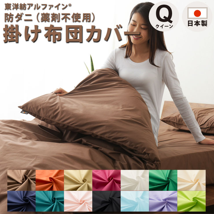 掛け布団カバー 掛けカバー クイーンサイズ 東洋紡 アルファイン 防ダニ ダニ防止 日本製 布団カバー 掛ふとんカバー 掛けふとんカバー 掛カバー ふとん ブラウン ベージュ アイボリー ブラック エムール